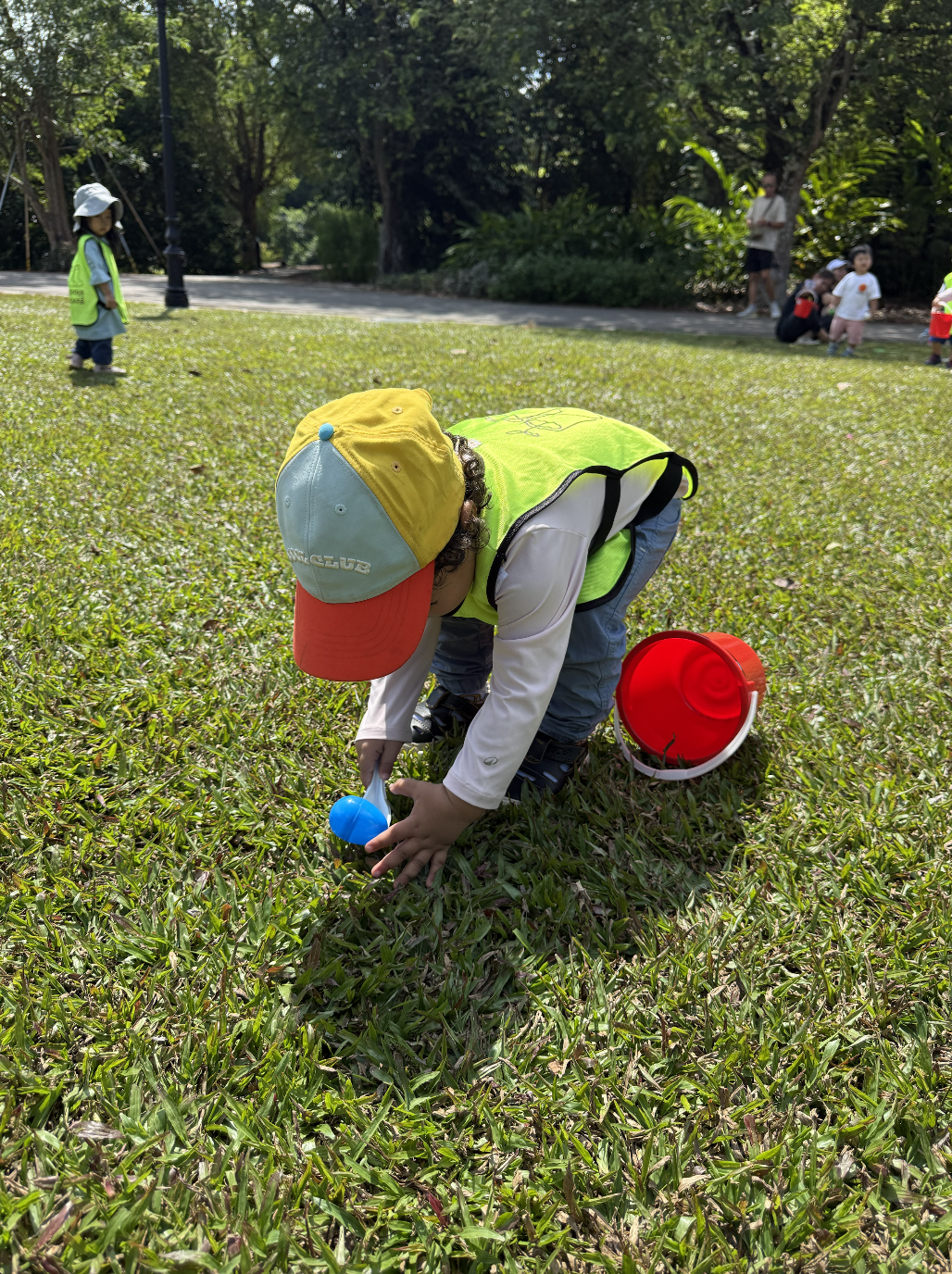 Movement and play were also at the heart of our celebration. In the open space of our forest environment, laughter echoed as children rolled like eggs across the ground, experimenting with balance, coordination, and the joy of using their bodies in new ways. Another favorite was our egg-and-spoon activity, where children carefully scooped up eggs and carried them to their own buckets. These playful challenges encouraged focus, perseverance, and a sense of accomplishment—small but meaningful steps in their developmental journeys.